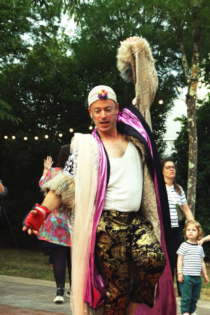 Le personnage demande des conseils, la machine propose des recettes pertinentes ou absurdes ; le corps répond, trébuche, improvise et transforme l’ordre en jeu. Le spectacle se fabrique partiellement en temps réel, selon les réactions du public et les réponses de l’IA, créant un décalage poétique entre ce qui est prescrit et ce qui advient réellement sur scène. Entre concert, performance physique et théâtre clownesque, le public assiste à une tentative joyeuse et chaotique de devenir une rock star… et peut-être simplement soi-même.